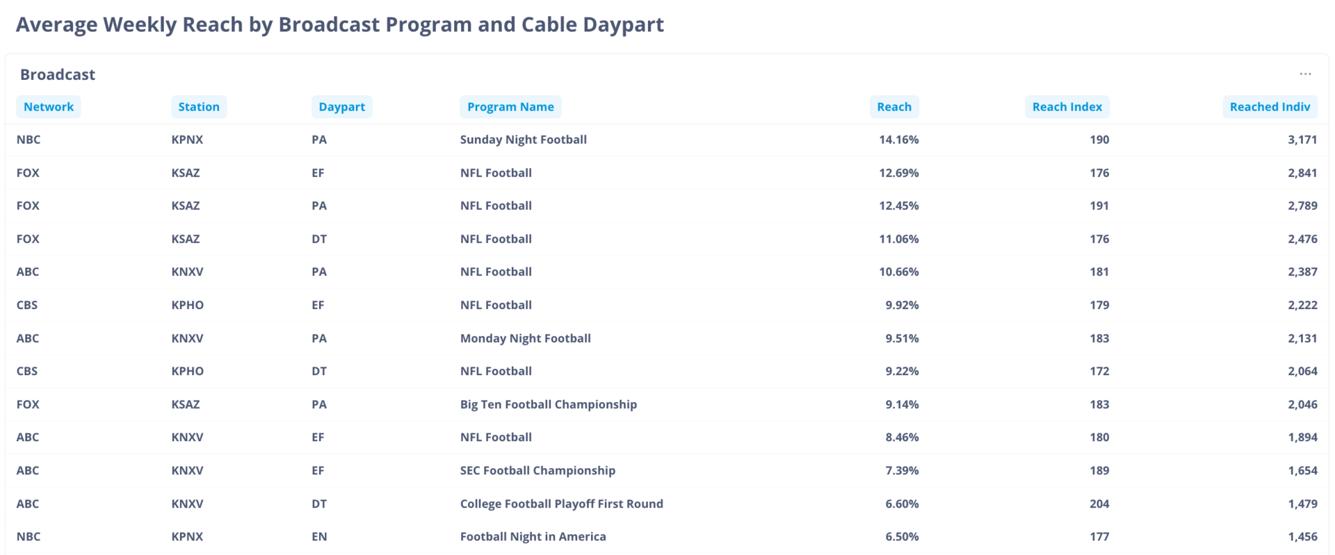 Of the 26 broadcast programs reaching 5%+ of the audience: