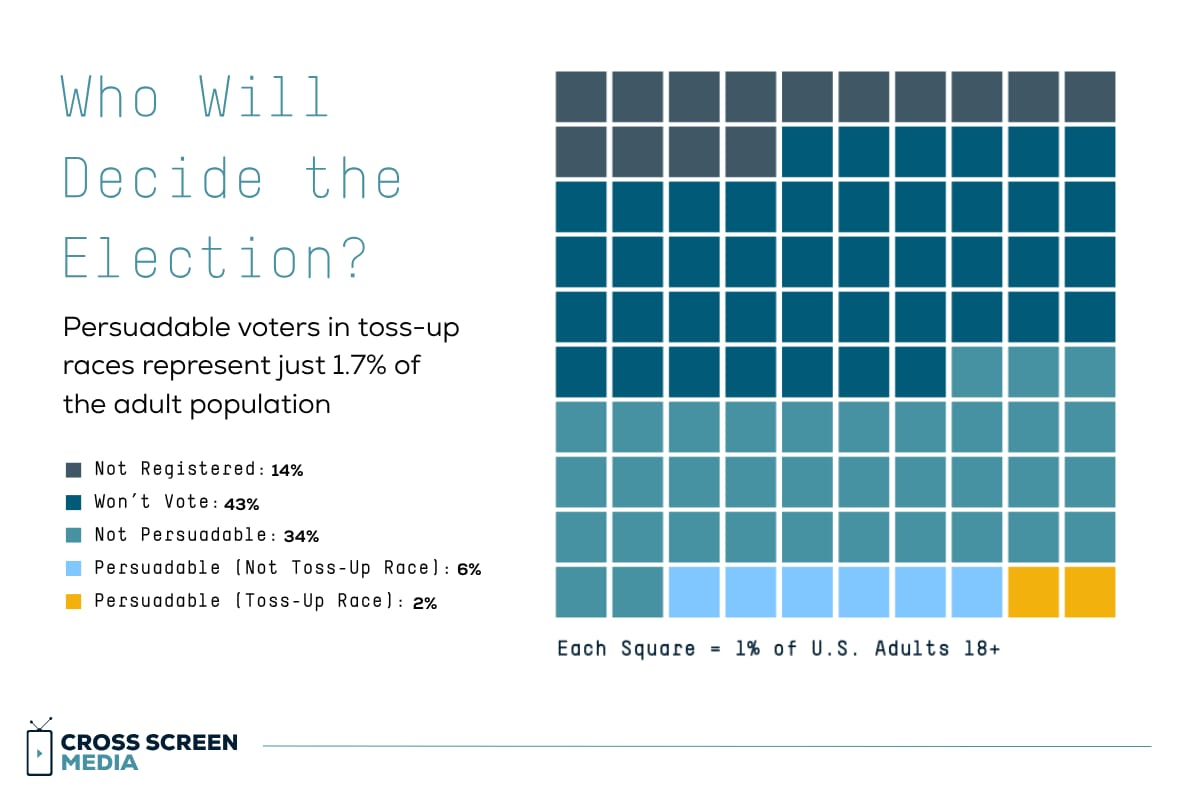 Battleground Data and Cross Screen Media just released our newest national model, showing that 8% of the adult population is still persuadable and likely to vote heading into the midterms.