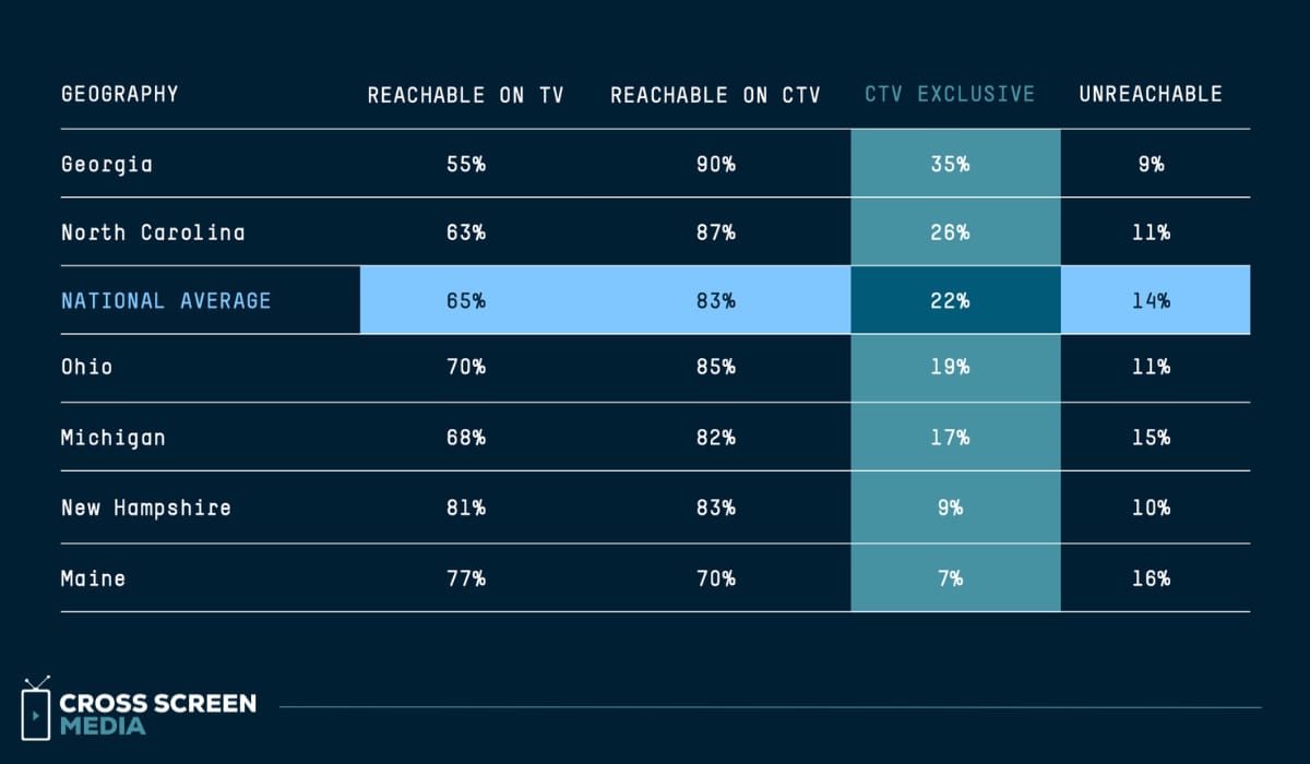 We combined voter data with viewership data to answer: Where can you actually reach persuadable voters on the big screen?